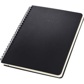 Spiralblock Conceptum. Hardcover-Einband mit geriffelter Kunststoff-Oberfläche. Papier cremefarben. Die stabile schwarze Metall-Doppelspirale erlaubt, dass der Block plan liegt und um 360 Grad umgeschlagen werden kann. Quickpocket im hinteren Einband. PEFC zertifiziert.