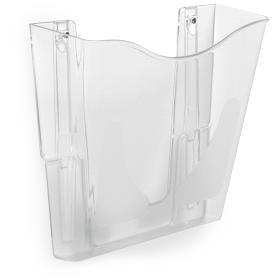 Kristallklarer Wandprospekthalter mit teilweise strukturierter Oberfläche, inkl. Montagematerial. Einfacher Zugriff und Aufbewahrung von Dokumenten, langlebige Konstruktion. Material: GPPS (Allzweck Polystyrol).