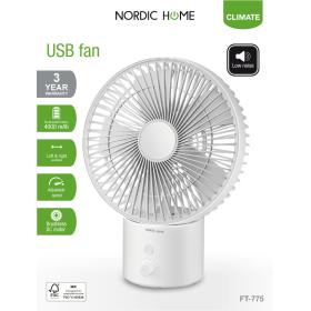 Wiederaufladbarer USB-Ventilator mit integrierter Lithium-Batterie, mehreren Geschwindigkeiten, Oszillationsfunktion und 24° Neigungswinkel. 5V 6,5W, 4400nAh Lithium-Batterie