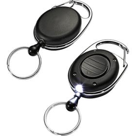 Ovales Jojo in ansprechendem Design. Mit Metallclip-Befestigung und Schlüsselring. Mit starker LED-Lampe.