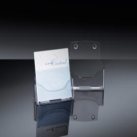 Tisch-Prospekthalter aus hochwertigem, glasklarem, 2,0 mm starkem Acryl vereint die optischen Vorteile von Glas mit der Bruchsicherheit eines Kunststoffes. 25 Jahre Garantie auf die UV-Beständigkeit des Acryls. Der Tisch-Prospekthalter weist eine hohe Stabilität und Standfestigkeit auf. Im Nut- und Federprinzip lassen sich mehrere Tisch-Prospekthalter, auch unterschiedliche Grössen, miteinander verketten. Durch die geriffelte Bodeninnenseite und einer gewölbten Rückfläche verrutschen die Inhalte nicht und besitzen eine optimale Standsicherheit.