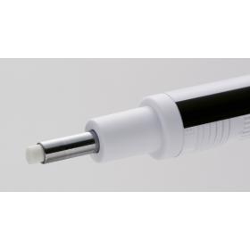 Radierstift MONO zero mit runder Spitze mit 2,3 mm Durchmesser. Radiert punktgenau und sauber - das ideale Utensil für Profis und Hobbykünstler, Architekten, Designer, Zeichner u.v.m. Bequeme Handhabung durch Druckmechanismus und Metallminenführung.