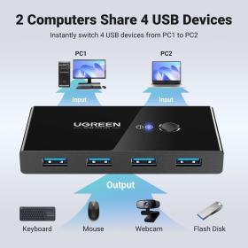 Dieser 4-Port-USB-Sharing-Switch ermöglicht den Austausch von 4 USB 2.0-Peripheriegeräten zwischen 2 Computern mit nur einer Taste, ohne dass ständig Kabel ausgetauscht oder komplizierte Netzwerk-Sharing-Software eingerichtet werden muss. Ideal für die gemeinsame Nutzung von Geräten wie Drucker, Scanner, Maus, Tastatur, Kartenleser, Flash-Laufwerk und anderen USB-Geräten zwischen 2 Computern. Stabile Verbindung: USB 2.0-Sharing-Schalter mit einem separaten Micro-USB-Buchsen Anschluss für optionale Stromversorgung, die seine Kompatibilität mit mehr Geräten, wie HDD, digitale Videokameras, SSD usw. zu optimieren. Wichtiger Hinweis: Bitte verwenden Sie einen Standard-5V-Adapter (nicht im Lieferumfang enthalten, separat erhältlich) für die Stromversorgung. Jedes Ladegerät mit höherer Ausgangsspannung ist NICHT erlaubt und kann die Produktleistung beeinträchtigen