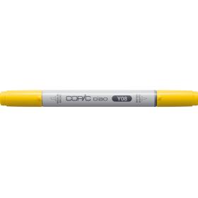 Copic Ciao Marker Y08, der preisgünstige, doppelseitige Allround-Marker in 180 Farben. Der Copic Ciao bietet Newcomern viele Produktvorteile, die bereits den Copic classic und den Copic Sketch aus dem Profilager ausgezeichnet haben. Ausgestattet mit einer universell einsetzbaren, mittelbreiten Spitze, verfügt er ausserdem über eine flexible Pinselspitze. Mit dieser können weiche Striche mit interessanten Modulationen erzielt werden. Der Ciao Marker ist daher für Modedesign und Kalligrafie, zum Skizzieren, Scribblen und Layouten perfekt einsetzbar. Insbesondere Hobbykünstler & Mangaka bevorzugen den Copic Ciao, u.a. zum Kolorieren von Scrapbookings, Stempelkunst und handgemachten Karten. Die eingefärbten Kappen ermöglichen eine schnelle und exakte Identifizierung der Farbtöne. Die 180 leuchtenden Farben auf Alkoholbasis sind toxikologisch unbedenklich und nahezu geruchlos. Die Tinte trocknet schnell, verwischt nicht und kann auf der Fläche gemischt und übereinandergelegt werden. Alle erhältlichen 180 Farben können mit Copic Ink farbidentisch wieder aufgefüllt werden. Mit einer einzigen Nachfüll-Flasche kann der Marker 9 x wieder aufgefüllt werden. Das garantiert ein optimales Kosten-Nutzen-Verhältnis, ist umweltfreundlich und wirtschaftlich.