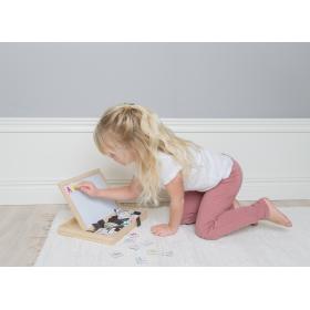 Das magnetische Alphabet enthält das gesamte Alphabet, einschliesslich skandinavischer und deutscher Buchstaben. Es gibt 3 Stück von jedem der häufigsten Buchstaben und 2 Stück aller anderen Buchstaben. Das Set enthält auch 2 Stück jeder Nummer.