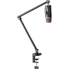 Dieser Arm besteht aus einer stabilen Stahlkonstruktion, die dafür sorgt, dass Ihr Mikrofon während Ihrer Streaming-Sessions sicher und vibrationsfrei bleibt. Wählen Sie zwischen Vorwärts- und Rückwärtsausrichtung, um Ihr Setup perfekt anzupassen. Egal, ob Sie auf Twitch streamen, einen Podcast aufnehmen oder ein virtuelles Meeting abhalten, Sie können den Arm mühelos an Ihre Bedürfnisse anpassen. Dieser Mikrofonarm hat einen Höhenbereich von 0 bis 812 mm, so dass Sie die Position Ihres Mikrofons mühelos einstellen können. Ausserdem unterstützt er sowohl 3/8"- als auch 5/8"-Schraubgewinde und ist somit mit einer Vielzahl von Mikrofonen kompatibel. Der Mikrofonarm lässt sich problemlos mit einer C-Klemme befestigen und eignet sich daher für nahezu jeden Schreibtisch oder Arbeitsbereich. Mit einer Gewichtskapazität von 1 kg können Sie Ihr Mikrofon, den Poppfilter und die Schockhalterung bedenkenlos montieren. Der Arm verfügt ausserdem über ein praktisches Kabelmanagement. Die pulverbeschichtete Oberfläche trägt nicht nur zu seiner Langlebigkeit bei, sondern verleiht ihm auch ein elegantes, mattschwarzes und hellgraues Finish, das mit Sicherheit beeindruckt.Dieser Mikrofonarm verfügt über eine robuste Stahlkonstruktion für eine sichere und vibrationsfreie Mikrofonhalterung. Er bietet flexible Ausrichtungsoptionen für verschiedene Streaming-Anforderungen und eine einfache Mikrofonpositionierung. Darüber hinaus ist er mit verschiedenen Mikrofonen kompatibel, lässt sich mit einer C-Klemme einfach installieren und unterstützt eine Gewichtskapazität von 1 kg, während er ein bequemes Kabelmanagement bietet.