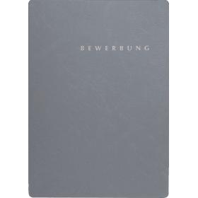 Aus durchgefäbtem Karton mit strukturierter Oberfläche und silbernem Schriftzug BEWERBUNG auf dem Vorderdeckel, 3 Klappen, Halbmondstanzungen, 1 Klemmschiene.