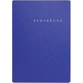 Bewerbungsmappe Select, für Dokumente im Format A4, Basic, 3-teilig, blau, aus hochwertigem Karton, mit praktischen Halbmondstanzungen und stabiler Klemmschiene, silbernem Schriftzug „Bewerbung“ auf dem Vorderdeckel