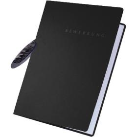 Bewerbungsmappe Swing, für Dokumente im Format A4, Basic, 2-teillig, grau, aus hochwertigem Karton, mit stabiler Kunststoffklemme, silbernem Schriftzug „Bewerbung“ auf dem Vorderdeckel