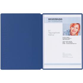 Bewerbungsmappe Solo, für Dokumente im Format A4, Classic, 2-teilig, blau, aus hochwertigem Karton, mit stabiler Klemmschiene, erhabener Prägung „Bewerbung“ auf dem Vorderdeckel