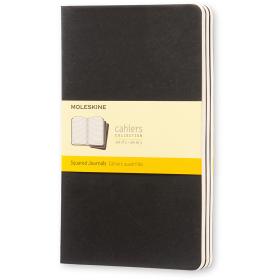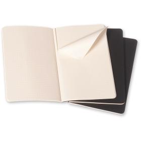Die Moleskine-Cahier-Notizhefte haben einen stabilen Einband aus schwarzem Karton mit sichtbarer Fadenheftung. Die letzten 16 Seiten sind heraustrennbar, mit einer grossen Innentasche für lose Zettel und einem Text zur Geschichte von Moleskine. Kariertes, säurefreies Papier. 3er-Set.