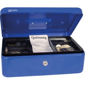 Die Geldkasse von RIEFFEL ist aus Stahlblech und hat ein Zylinderschloss mit 2 Schlüsseln. Der herausnehmbare Münzeinsatz kann so sicher verstaut werden.