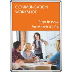 Wetterfester Plakatrahmen für die Präsentation von Postern und Informationen mit entspiegelter PVC-Abdeckung. Praktischer Aluminiumrahmen zum einfachen Posterwechsel. Zeitloses Design.