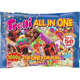 Trolli All in one - wie der Name euch schon verrät, steckt hier alles in einem grossen Beutel. Das ist der grosse Traum aller, die von den abgefahrenen bunten Fruchtgummis nicht genug bekommen können.