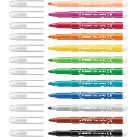 Der neue Filzstift Trio Jumbo liegt dank ergonomischer Dreikantgriffzone so gut in der Hand, dass zusammen mit der besonders dicken Malspitze grosse Kunst fast garantiert ist. Die robuste und eindrücksichere Spitze sorgt für Kreativität und macht das Malen zum Farbvergnügen. Und falls der kleine Picasso im Eifer des Gefechts übers knallig-bunte Ziel hinausschiesst, können Eltern aufatmen: Die leuchtend-schönen Farben lassen sich kinderleicht aus Textilien und von der Haut auswaschen.