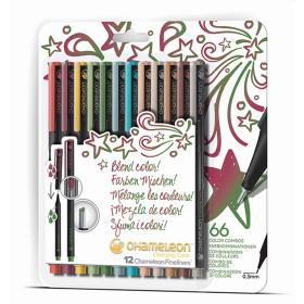 Chameleon Fineliner haben ein patentiertes Doppeltintensystem mit Tinte im Stift und in der Kappe! Um Farben sofort zu mischen, müssen Sie nur die Kappe wechseln oder die Spitze auf einen anderen Stift stülpen, einige Sekunden warten und lebendige Farben für Farbmischungen erstellen! Schreiben, zeichnen und malen wie kein anderer! Ideal zum Schreiben, Malen, Kritzeln und Zeichnen. Perfekt für Bullet-Journale und Planer, da die Tinte nicht durch die meisten Papiere fliesst. Verfügt über eine feinspitzige japanische 0,3-mm-Metallspitze für eine super gleichmässige Schreibleistung. Ergonomisches Design. Trockensichere Tinte auf Wasserbasis. Wird nicht durch die meisten Papiere bluten.