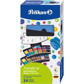 Der Farbkasten ProColor® von Pelikan enthält 24 hochwertige Farben mit starker Deckkraft, eine besonders gute Haftung und lichtechte Farbpigmente. Die Farbschälchen sind auswechselbar und zum Nachkauf erhältlich. Im Deckel des Pelikan Farbkastens befindet sich eine herausnehmbare Mischpalette. Das Blau links und rechts sind 2 abnehmbare Wasserboxen. Inkl. einer Tube Deckweiss zum Aufhellen der Farben. Der Pelikan Farbkasten wird in Deutschland hergestellt. In Faltschachtel aus nachhaltigem FSC-Mix Karton.