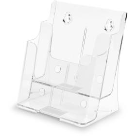 Für eine Vielzahl an Prospekten, spart wertvolle Präsentationsfläche. Zum Aufstellen oder zur Wandmontage. Abgeschrägt für eine stabile Produktpräsentation. Material: Polystyrol. Mit 2 Fächern.