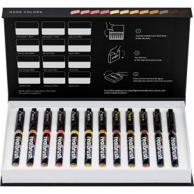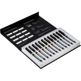 REAL BRUSH PIGMENT Pinsel geben Künstlern die Freiheit, kreativ zu sein. Dies ist ein modernes Werkzeug, was eine grosse Auswahl an vorgefertigten Farben bietet. Mit ihnen können Sie mit beliebten Techniken des Mischens und Auftragens von Farben eine unendliche Anzahl zusätzlicher Farben und deren Schattierungen erzeugen. Die Verwendung von REAL BRUSH PIGMENT Pinsel ähnelt der Verwendung von Acrylfarben, jedoch in einer modernen und praktischen Form eines Markers mit Pinselspitze (sog. real brush Marker). Ihre deckende Farbe kann auf Papier, Metall, Glas, Kunststoffen, Holz, Textilien und vielen anderen Untergründen verwendet werden. Diese deckende, matte Farbe ermöglicht den Einsatz auch auf dunklen Untergründen. Die Farben können gemischt werden, bis die Farbe vollständig getrocknet ist. Die Trocknungszeit der Farbe hängt von der Oberfläche auf der die Farbe aufgetragen wurde ab. Nach vollständiger Trocknung wird die Farbe wasserfest, kann aber auch von einigen Oberflächen entfernt werden (mehr Information in weiterem Teil dieser Anleitung). Um sicherzustellen, dass die Farbe scheuerfest ist, sollte sie mit Klarlack bedeckt warden. REAL BRUSH PIGMENT Pinsel enthalten 2,4 ml ungiftige opake Farben auf Basis organischer Pigmente. Sie werden in der so genannten "free - ink" Technologie hergestellt, dank derer sie im Gegensatz zur herkömmlichen Stiften den Verbrauch von 100% der enthaltenen Farbe ermöglichen. Pinselgrösse: 4 mm.