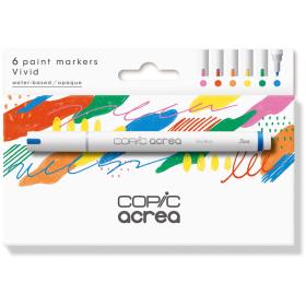 Copic Acrea bietet eine unverwechselbare Auswahl an Wasser- und und pigmentbasierten Markern mit 24 deckenden Farbtönen die von Schneeweiss bis zu saftigen Pastelltönen und glänzenden Metallic. Die Marker Tinten sind wasserfest, ungiftig und geruchsneutral.