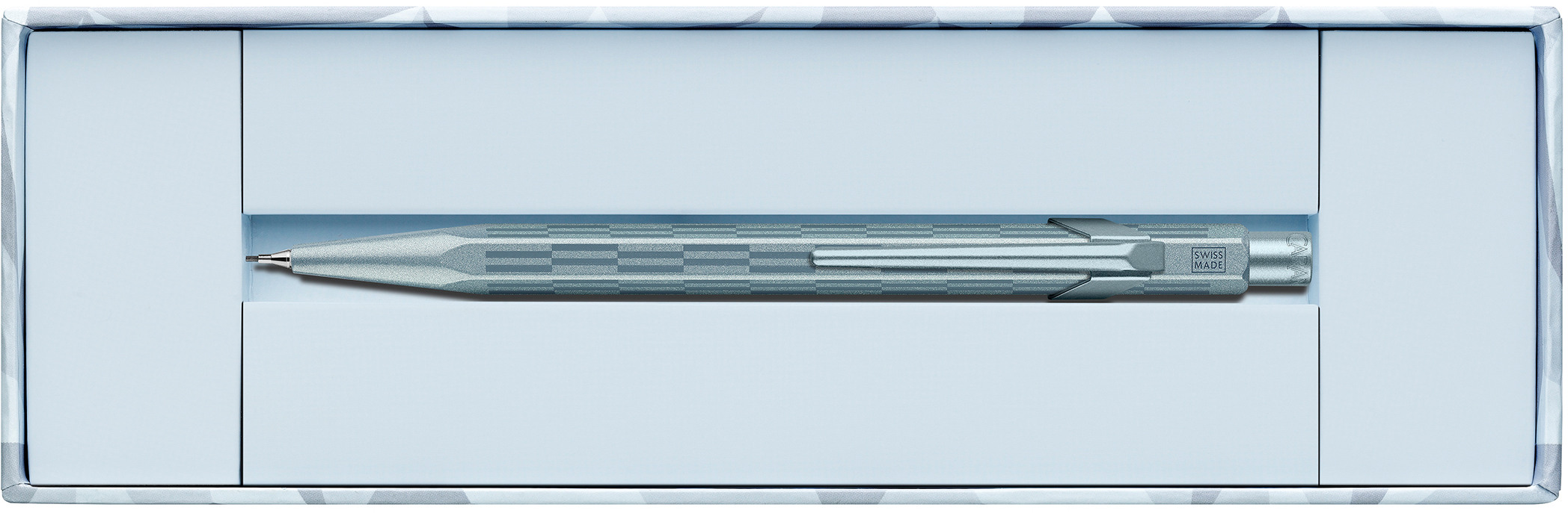 Für die Weihnachtszeit lädt Sie Caran d’Ache mit der Sonderedition Alpine Frost zu einer Reise durch die verschneiten Berge ein. Inspiriert von der Reinheit gefrorener Seen und der Silhouette weißer Berggipfel fängt diese Kollektion in perlweißen und polarblauen Farbtönen den ganzen Zauber des Winters ein. Der Druckbleistift 849™ trägt geometrische Motive, die an Eiskristalle mit frostigem Schimmer erinnern.