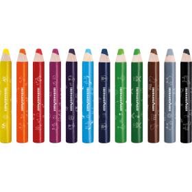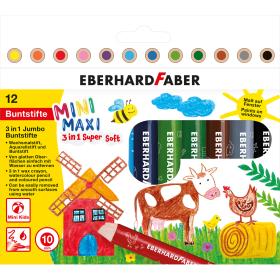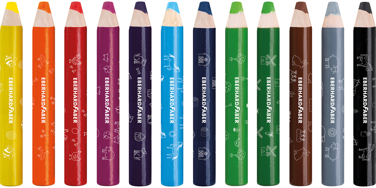 Der Buntstift 3in1 Jumbo MINI MAXI im 6er Etui ist ein Buntstift-, Wachsmal- & Aquarellstift in einem. Durch die dicke Form sind sie ideal für kleine Hände geeignet. Die Mine ist bruchsicher und hat einen Durchmesser von 10 mm. Der Schaft ist rund und holzfarben, aus Holz gefertigt. Der Farbabstrich ist Super Soft, von glatten Flächen einfach mit Wasser zu entfernen.