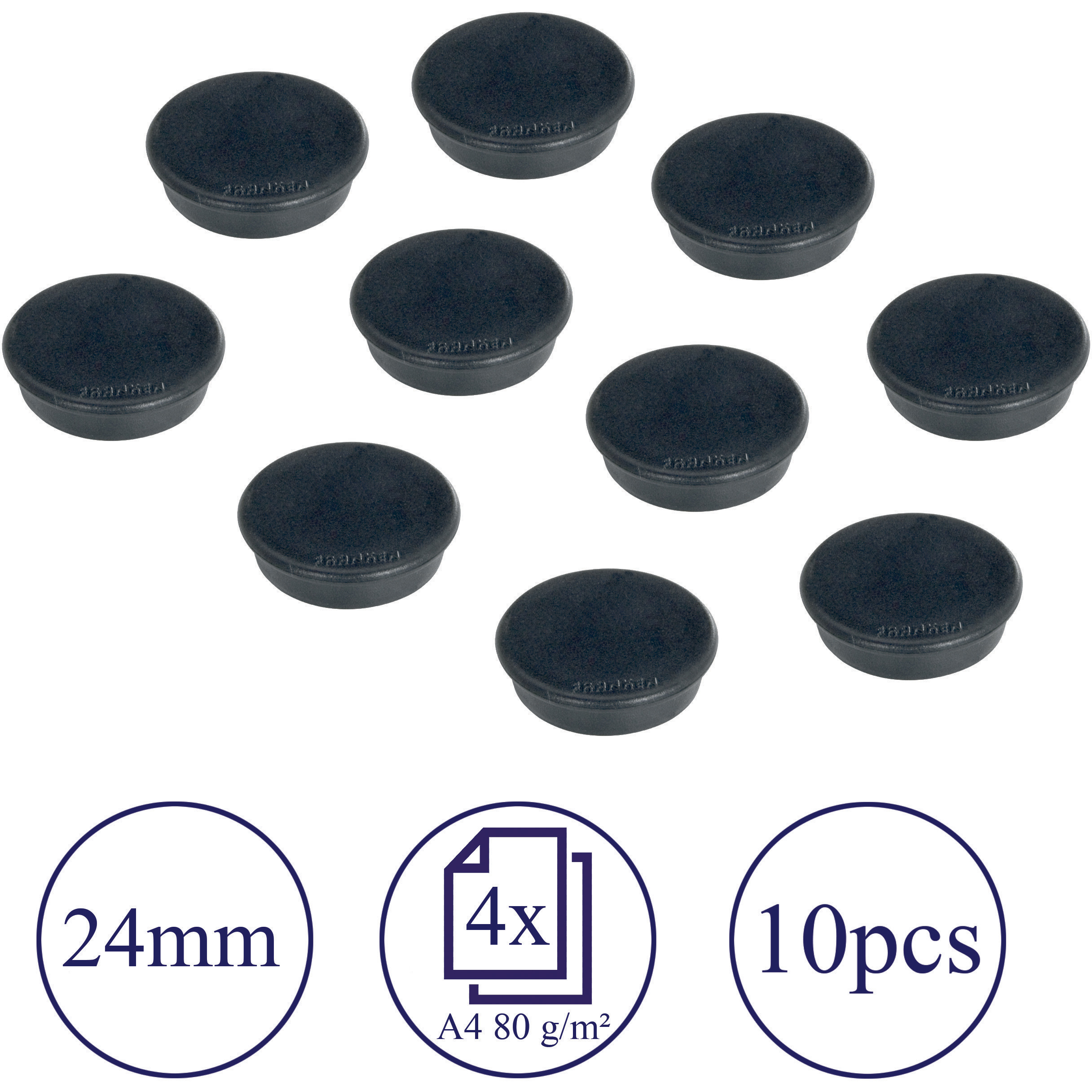 Die hochwertigen Haftmagnete verfügen über eine Kunststoffkappe und einen speziell lackierten Magneten, der ein Verkratzen der Plan- oder Schreibtafeloberfläche verhindert.