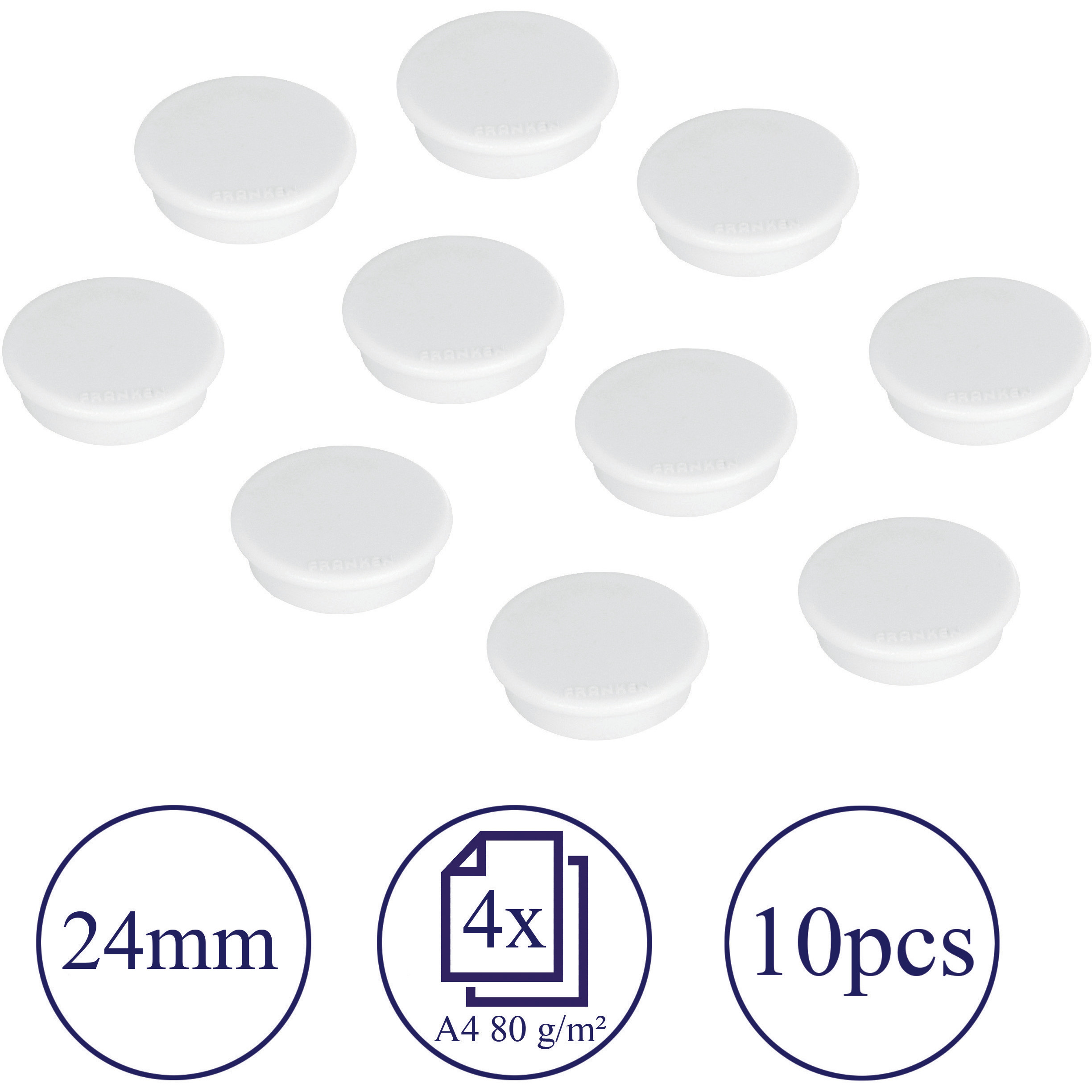 Die hochwertigen Haftmagnete verfügen über eine Kunststoffkappe und einen speziell lackierten Magneten, der ein Verkratzen der Plan- oder Schreibtafeloberfläche verhindert.
