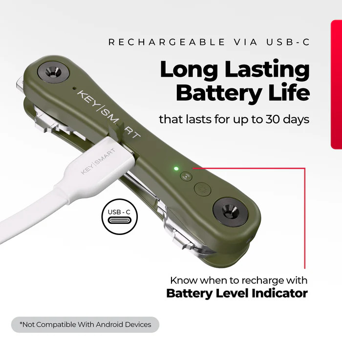 - Benachrichtigen Sie sich, wenn Sie Ihre Schlüssel vergessen. Die Apple „Wo ist?“ App verhindert proaktiv, dass Sie Ihre Schlüssel verlieren, indem sie Benachrichtigungen an Ihr iPhone sendet, wenn Sie Ihre Schlüssel vergessen. Sorgen Sie dafür, dass Ihre Schlüssel leise, kompakt und bequem sind. Organisieren Sie bis zu 14 Ihrer vorhandenen Schlüssel und Ihren Autoschlüssel mit dem KeySmart® iPro. Die einfache Einrichtung erfordert kein Werkzeug und ist für alle Schlüsseltypen geeignet. Ergänzen Sie Ihr zuverlässiges Multifunktionswerkzeug mit einem unserer Mini-Tools oder MagConnect. Wiederaufladbarer Akku mit langer Laufzeit und Ladestandsanzeige. Der KeySmart® iPro wird von einem Lithium-Polymer-Akku angetrieben und hat eine Laufzeit von bis zu 30 Tagen.