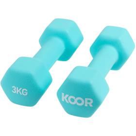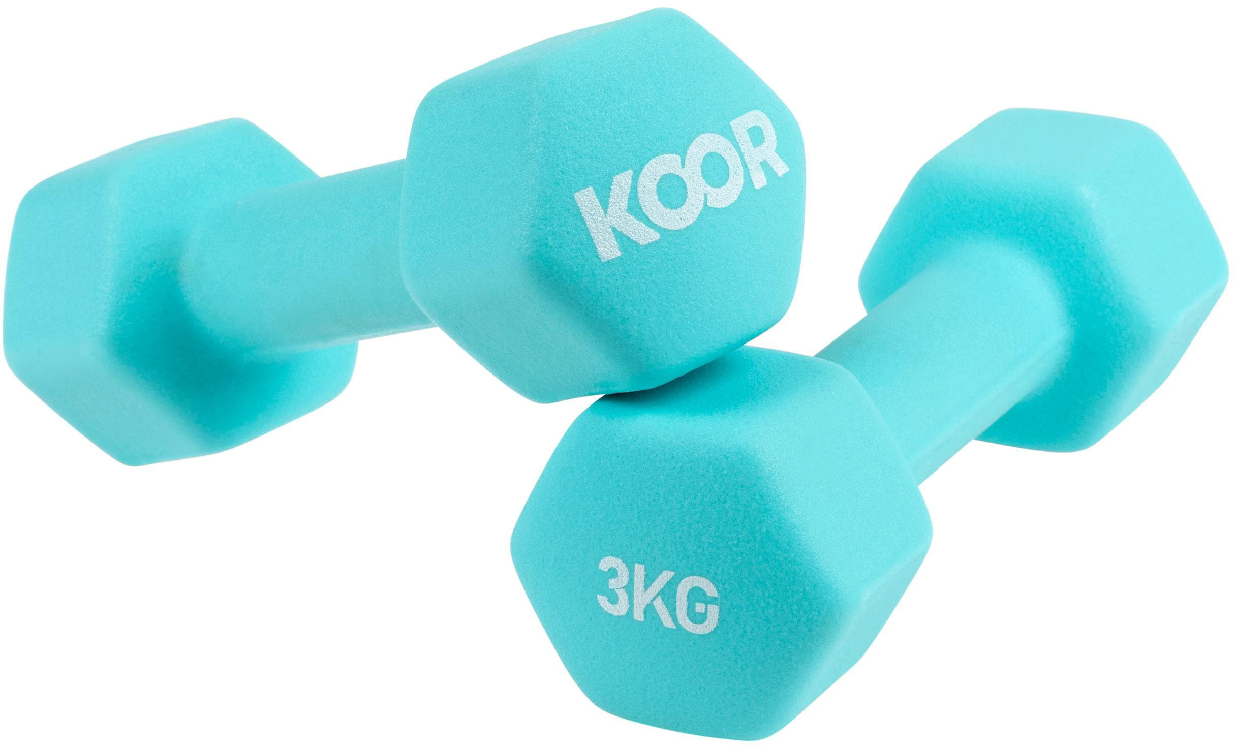 Zwei Hanteln aus massivem Gusseisen. Mit besonders griffigem, geschäumten PVC überzogen.