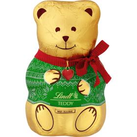 Teddy mit grünem Pullover. Was wäre die Weihnachtszeit ohne den Lindt Teddy. Mit viel Liebe zum Detail haben die Lindt Maîtres Chocolatiers diesen besonderen Teddy aus feinster Milch-Schokolade kreiert. Als Dekoration in der Weihnachtszeit oder auf dem bunten Weihnachtsteller darf er nicht fehlen. Engagiert für Nachhaltigkeit, unterstützt das Lindt & Sprüngli Farming Program die Kakaobauern.
