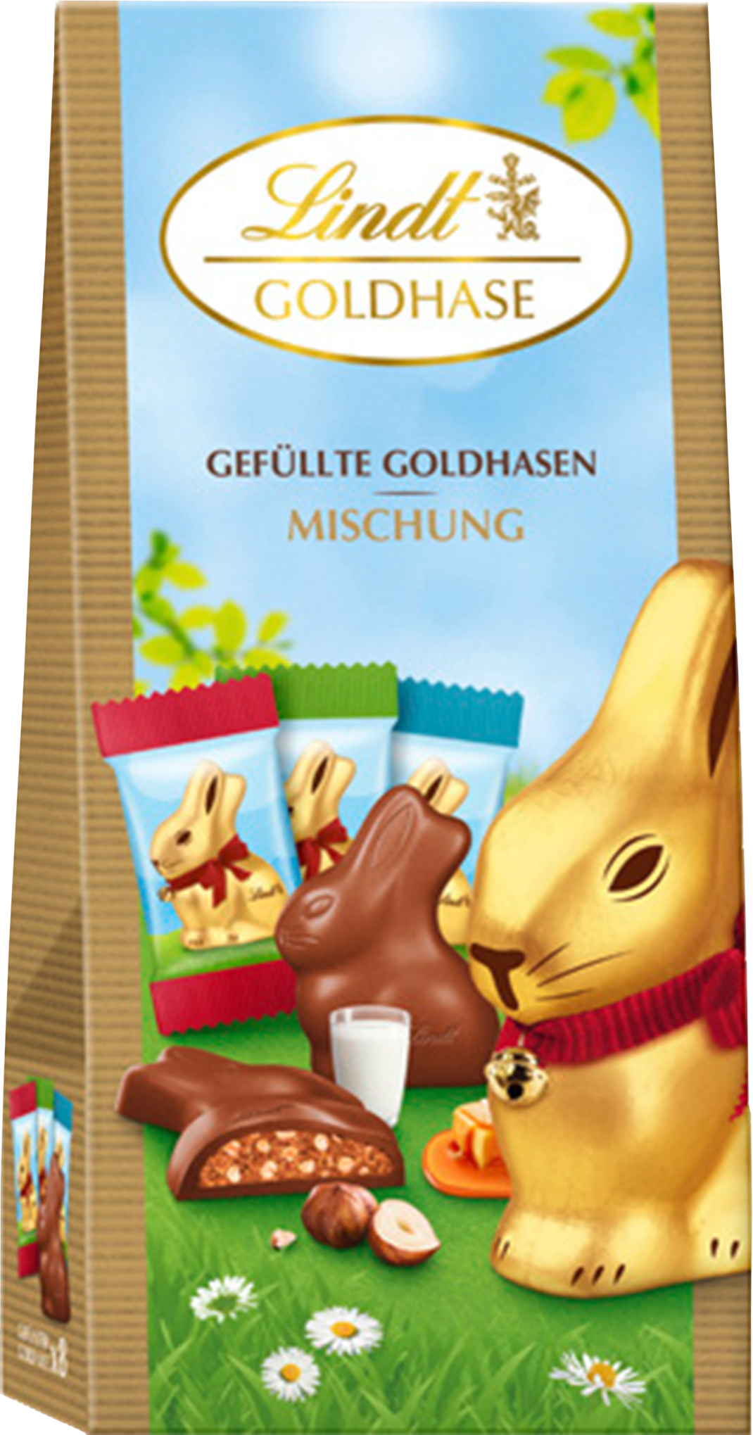 Einzeln verpackte GOLDHASEN aus Milchschokolade mit diversen Füllungen (Haselnuss, Milchcreme, Caramel). Ideal als Geschenk zu Ostern, zum Teilen mit Freunden oder zum einfach selbst Geniessen. Engagiert für Nachhaltigkeit, unterstützt das Lindt & Sprüngli Farming Program Kakaobauern und ihre Gemeinden vor Ort.
