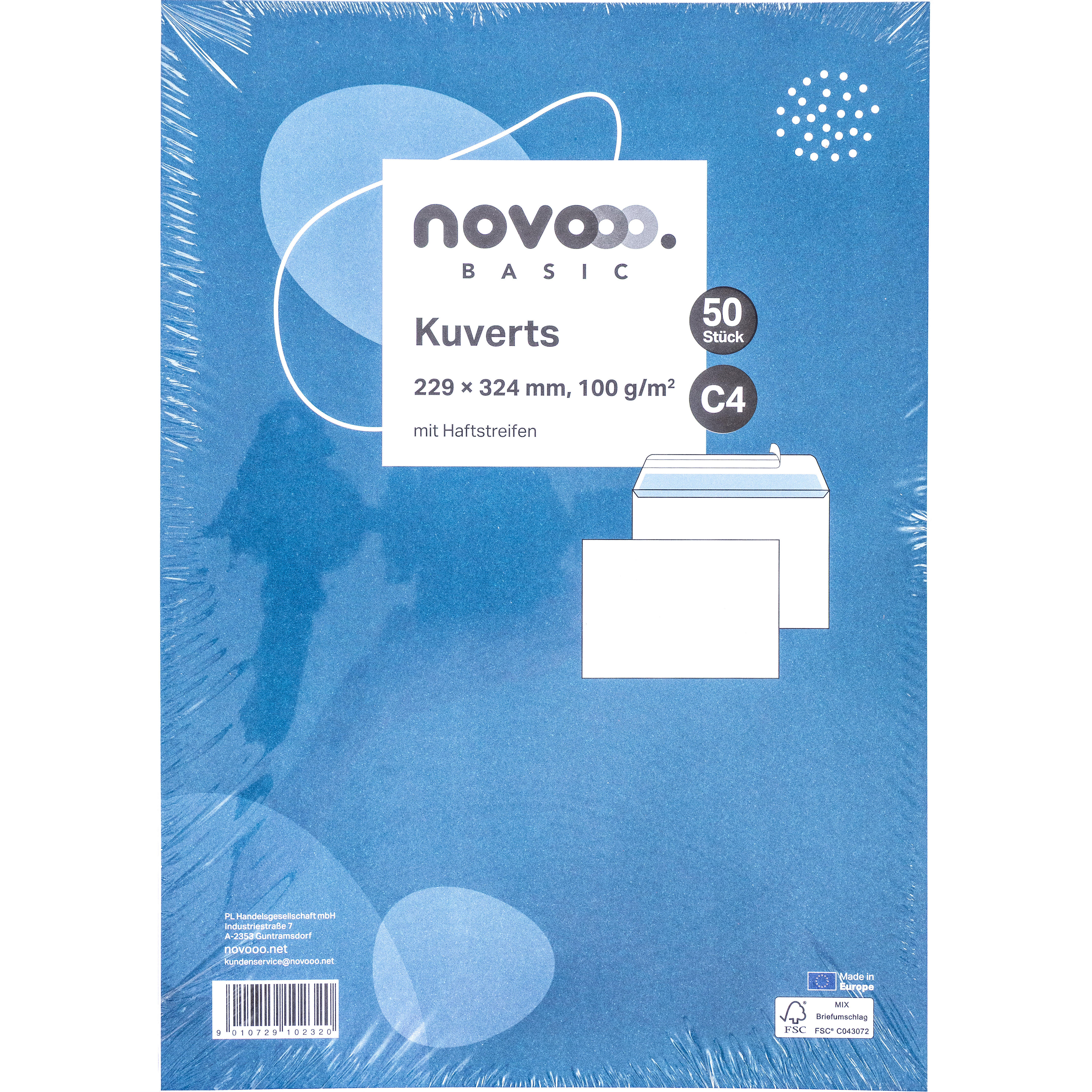 Die novooo Couverts C4 sind aus chlorfrei gebleichtem, weissem Papier hergestellt. Die Briefumschläge ohne Fenster sind mit einem abziehbaren Haftklebeverschluss versehen und für Laser- und Tintenstrahldrucker geeignet.