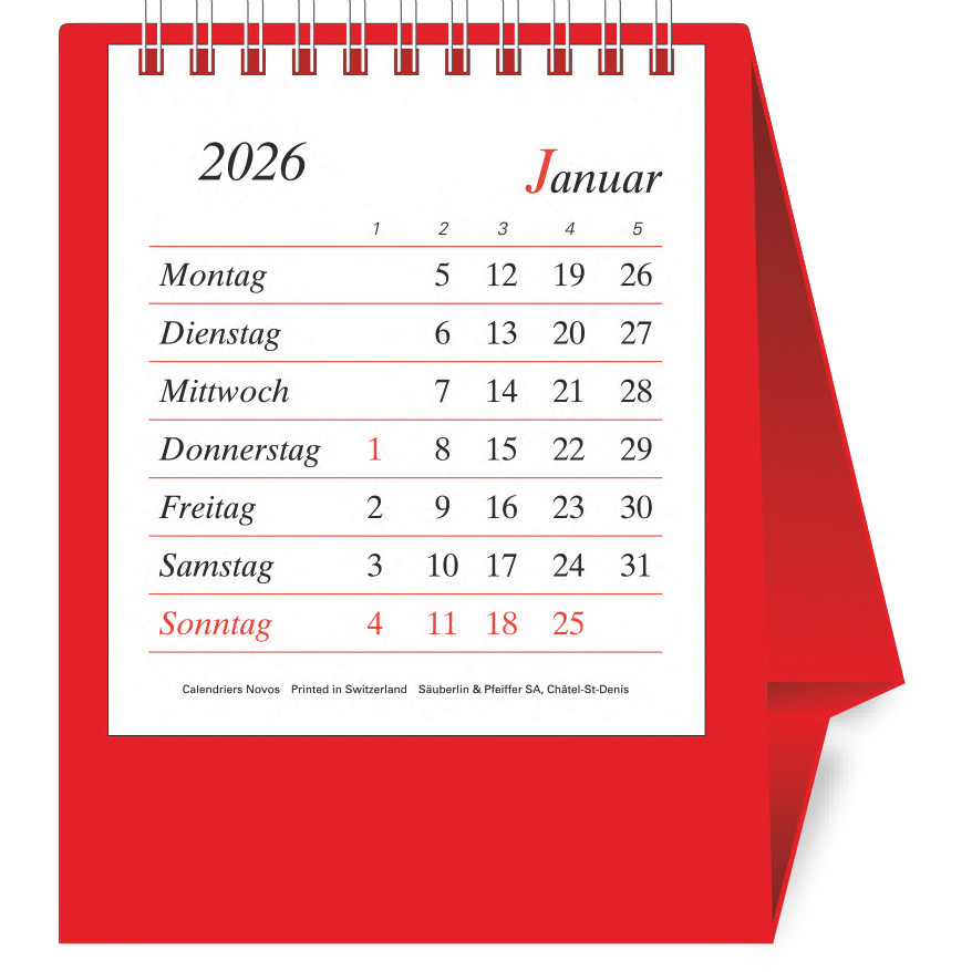 NOVOS Tischkal. Pro Bristol D. 2026 509018 1M/1S rot DE 11.5x14cm 480596-ITC