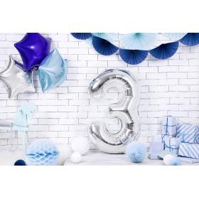 Der metallische Folienballon mit der Ziffer 3 ergänzt die Geburtstagsszenerie auf stilvolle Weise. Vor dem Aufblasen misst er 100 cm, nach dem Aufblasen 86 cm. Er kann sowohl mit Luft als auch mit Helium befüllt werden und wird im Set inklusive Strohhalm geliefert, sodass die Vorbereitung besonders einfach ist. Der Ballon ist selbstversiegelnd und mit einem Haken ausgestattet, der eine mühelose Befestigung ermöglicht. Ideal für runde Geburtstage, Jubiläen oder besondere Meilensteine.
