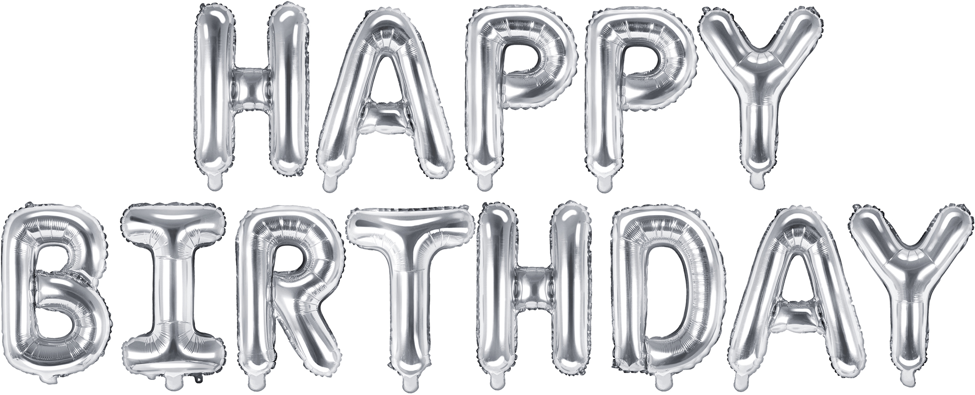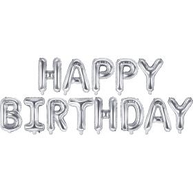 PARTYDECO Folienballon 340x35cm FB6M-018 Happy Birthday silber 424613-ITC