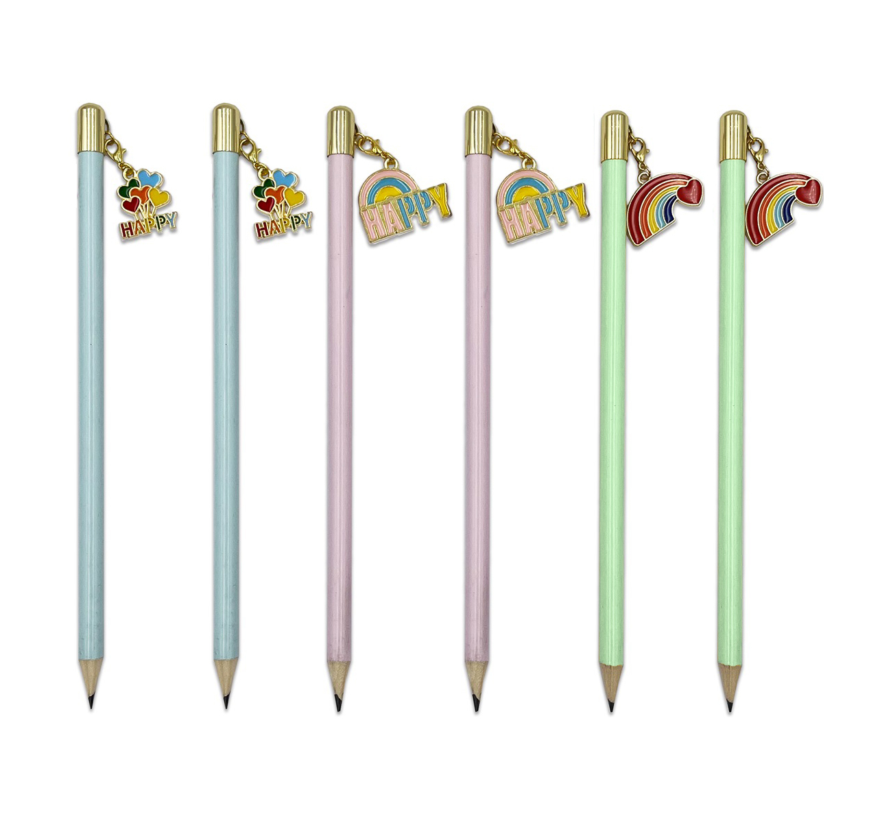 Farbenfroh, verspielt und absolut im Trend: Unsere Rainbow Charm Pencils sind mehr als nur Schreibutensilien – sie sind kleine Highlights für den Alltag. Jeder Bleistift ist mit einem farbenfrohen Regenbogen-Charm versehen und wird durch eine edle Metallkappe stilvoll abgerundet.