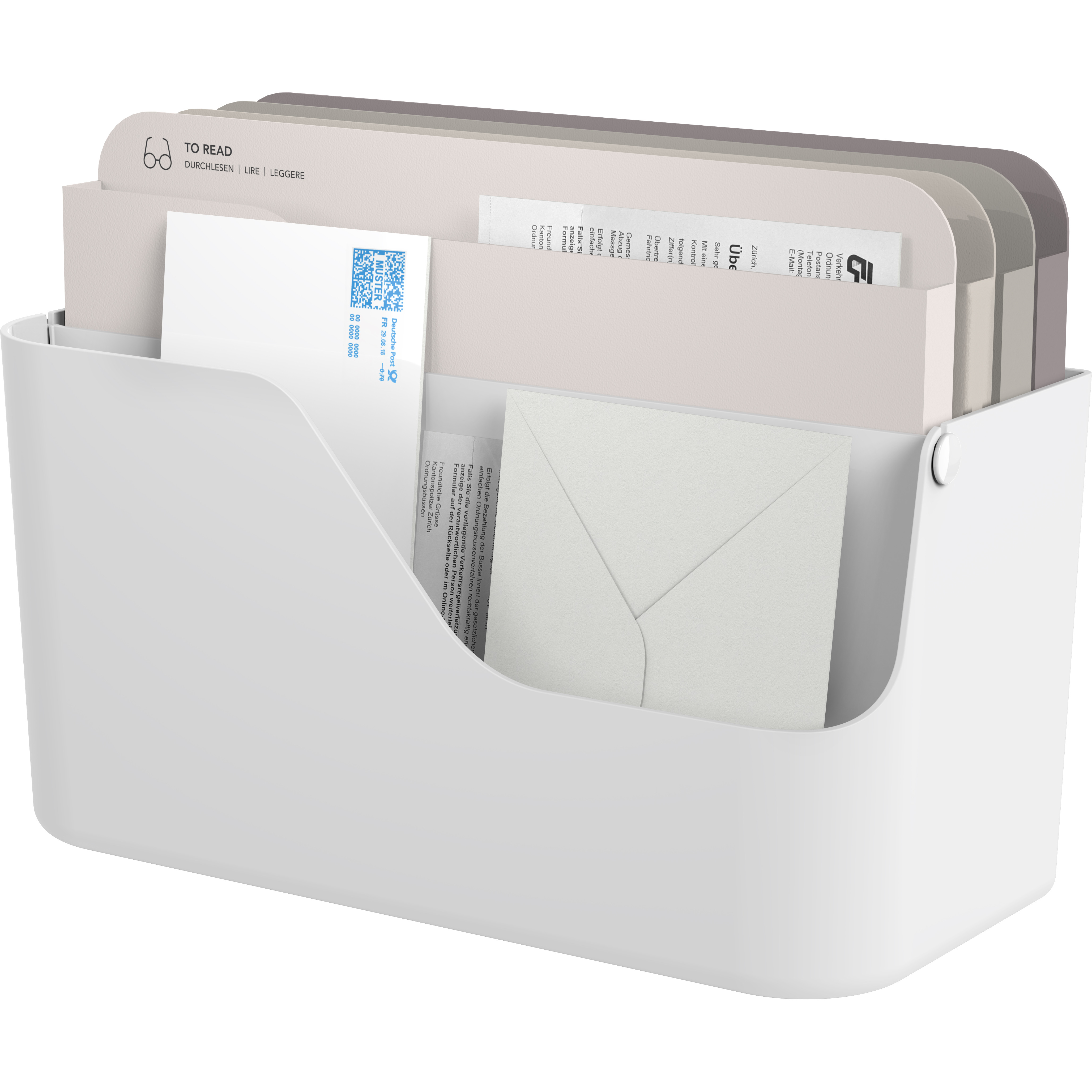 Neue Dokumente sammeln: Legen Sie neue Rechnungen, Dokumente und Briefe zunächst in das vordere Fach der MyPaper Plus Inbox.Sortieren und organisieren: Sobald Sie Zeit haben, sortieren Sie Ihre Unterlagen thematisch. Die vier robusten Mappen sind mit den Kategorien Archivieren, Bezahlen, Handeln und Durchlesen beschriftet. So behalten Sie immer den Überblick über wichtige Papiere oder anstehende Aufgaben. Jede Tasche ist für DIN-A4 Dokumente - einschließlich Umschläge - geeignet und schützt Ihre Inhalte zuverlässig.