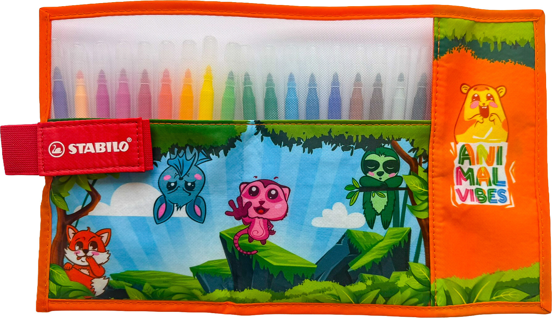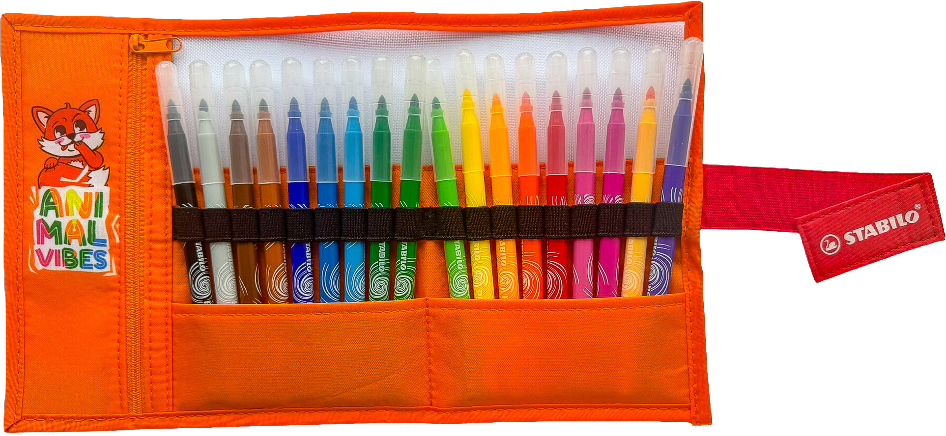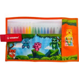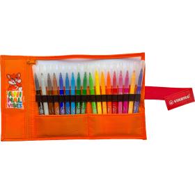 Die STABILO Animal Vibes Kollektion umfasst farbenfrohe, verspielte Versionen beliebter STABILO Produkte in limitierter Auflage. Dieses Rollerset im Animal Vibes Design in der Hauptfarbe Orange beinhaltet 18 Stk. Fasermaler STABILO power. Die Stifte können bis zu 8 Wochen offen liegen und trocknen dennoch nicht aus. Dies ist insbesondere dann ein Vorteil, wenn die Fasermaler auch von kleinen Kindern genutzt werden. Darüber hinaus ist die Tinte der Stifte auswaschbar - kleine Flecken sind somit kein Problem.