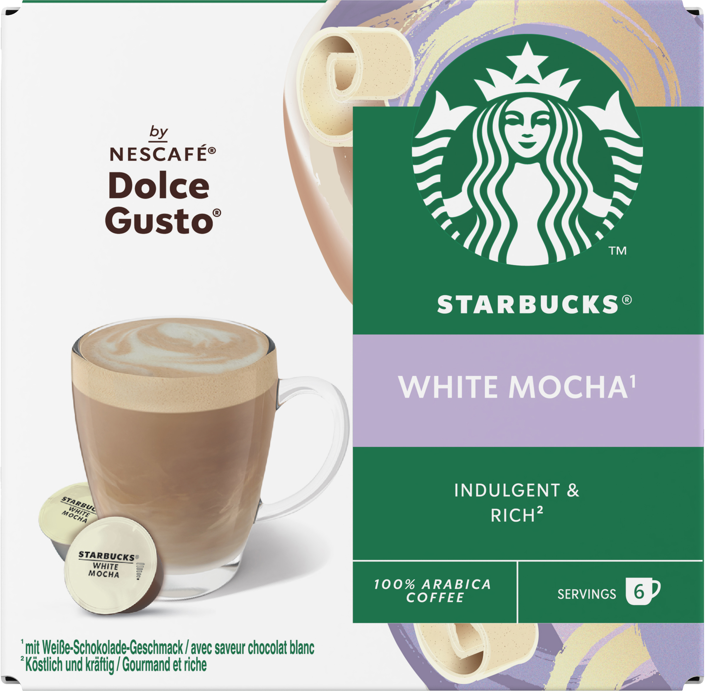 Inspiriert vom klassischen White Chocolate Mocha von Starbucks, hat man dieses wohlschmeckende und reichhaltige Getränk kreiert, das du zu Hause mit den gleichen hochwertigen Arabica-Bohnen zubereiten kannst, die auch in den Starbucks Coffee Shops verwendet werden. Gemischt mit Milch und dem köstlichen Geschmack nach weisser Schokolade und gekrönt mit einer weichen Schaumschicht, damit du ein herrlich vertrautes Starbucks-Getränk geniessen kannst.