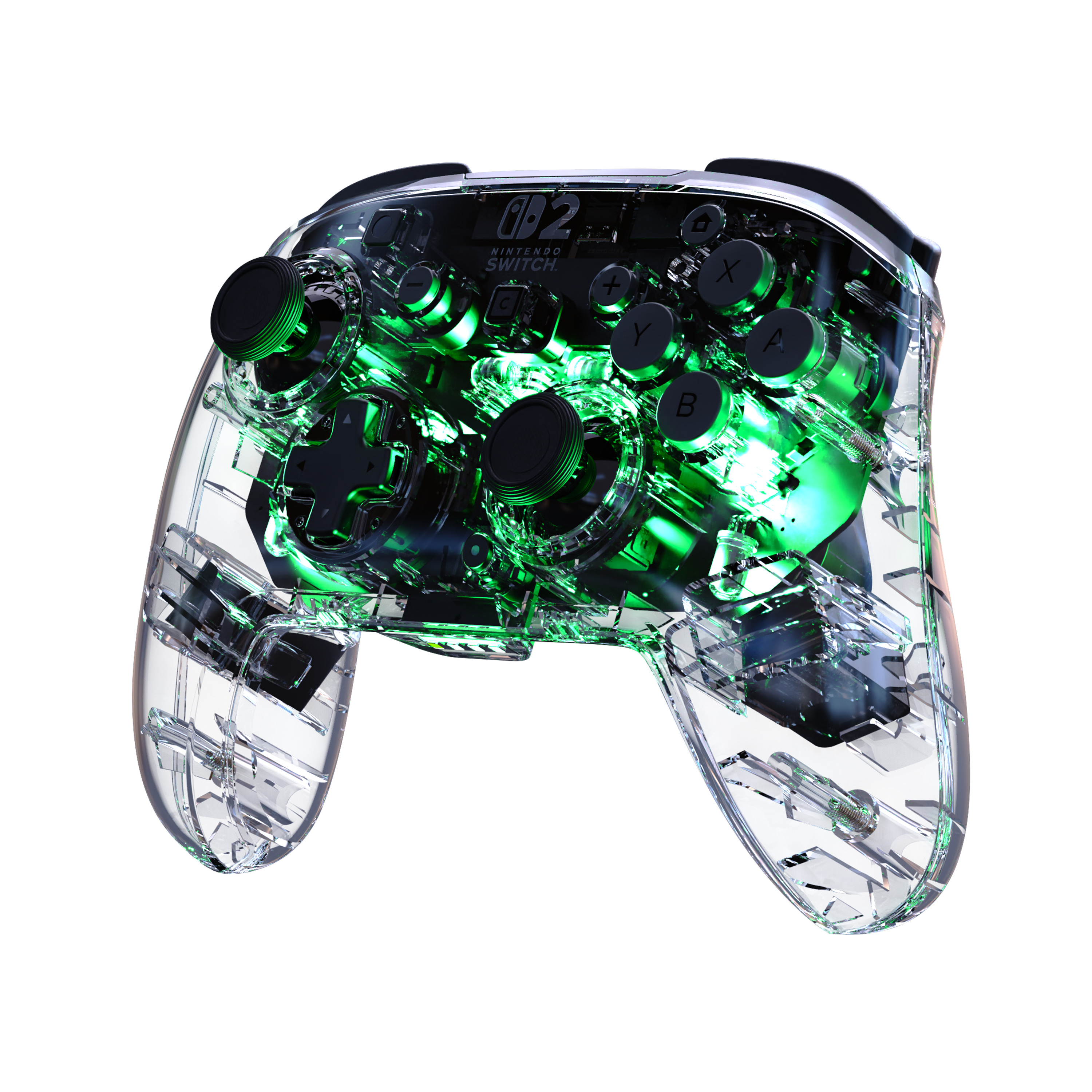 Mach dein Gaming-Erlebnis noch cooler mit dem kabellosen Afterglow RGB-Gaming-Controller für Nintendo Switch™ 2. Dieser Controller ist auch kompatibel mit Nintendo Switch™, Nintendo Switch™ Lite und Nintendo Switch™ - OLED-Modell. Genieße die coole LED-Beleuchtung mit einstellbarer Helligkeit und Farben für 4 voreingestellte Beleuchtungsmodi, die ein individuelles RGB-Leuchten erzeugen. Das transparente Design lässt die inneren Schaltkreise des Controllers durchscheinen und verleiht ihm einen eleganten Hightech-Look. Thumbsticks mit integrierter TMR-Sensortechnologie (Tunneling Magnetoresistance) bieten Präzision und Widerstandsfähigkeit, während die integrierte Bewegungssteuerung die Reaktionsfähigkeit verbessert. Mit der praktisch platzierten C-Taste kannst du schnell auf die GameChat-Funktionen zugreifen. Dank des wiederaufladbaren Akkus kannst du bis zu 40 Stunden lang kabellos spielen. Dieser Controller ist offiziell von Nintendo® lizenziert und bietet einen coolen Look, zuverlässige Leistung und den ganzen Tag lang Komfort für jede Gaming-Session.