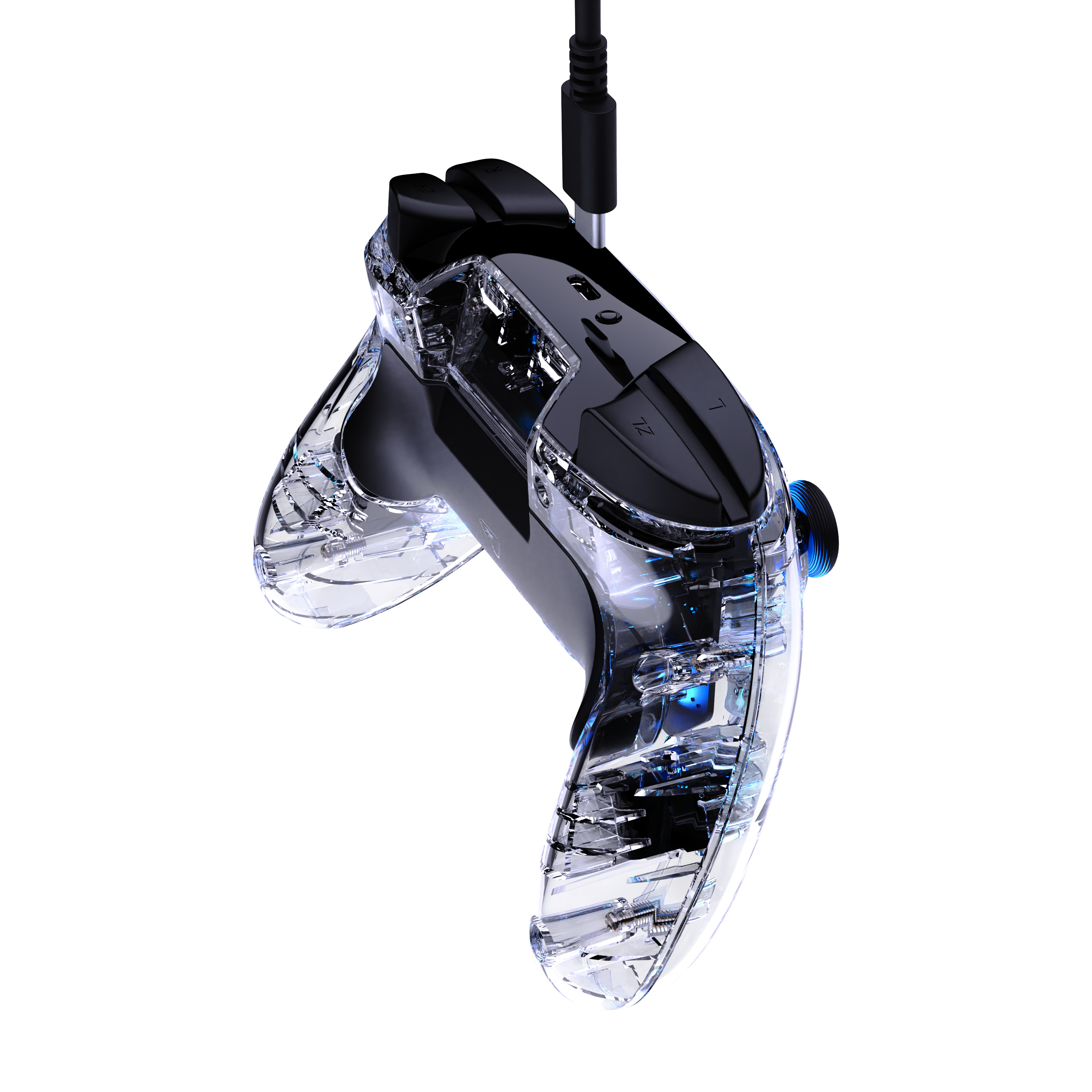 - Anpassbare RGB-Lichter. Erhelle deinen Raum mit 4 einstellbaren, voreingestellten Beleuchtungsmodi, die durch ein durchsichtiges Design, das die innere Schaltung des Controllers sichtbar macht, noch verbessert werden. Stelle die Helligkeit ein und passe deine Leuchteffekte an, um ein wirklich beeindruckendes Hightech-Gaming-Erlebnis zu schaffen, das sich von anderen abhebt.