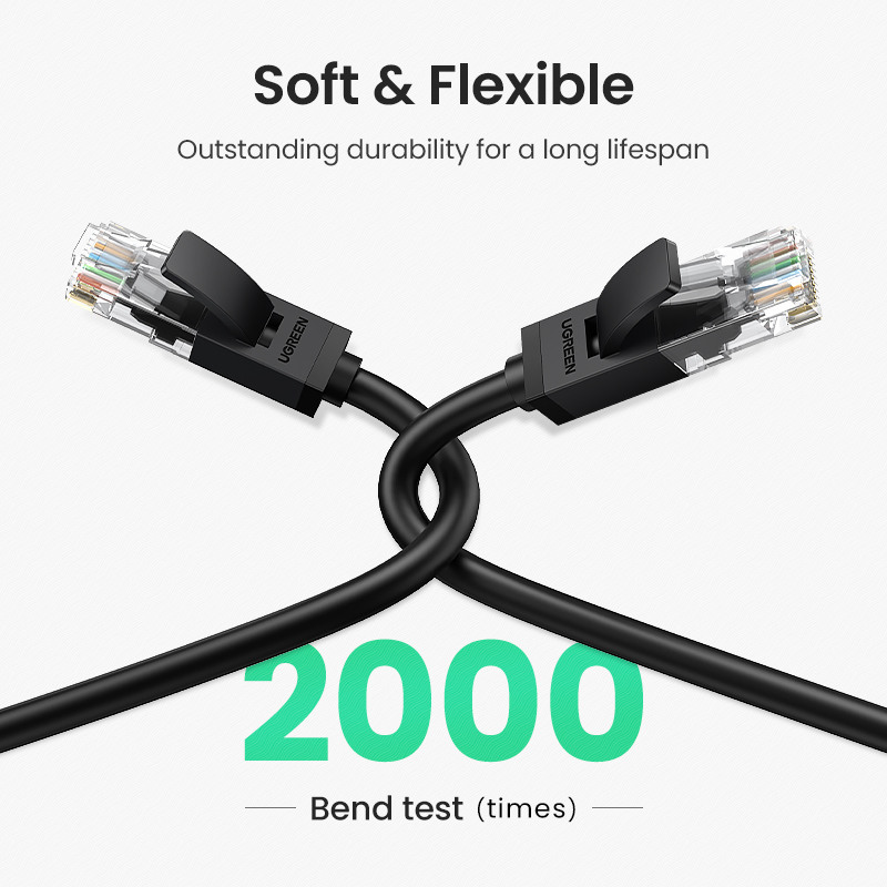 • Mit Ugreen-Patchkabeln verbinden Sie aktive und passive Geräte in LANs, Ethernet-Netzwerken sowie in Industrie-, Heim- und Büronetzwerken. Sie werden strengen Tests unterzogen, um die Anforderungen der Kategorie 6 zu erfüllen. Dies garantiert hohe Übertragungsparameter und eine Datenübertragungsrate von 1 Gbit/s.