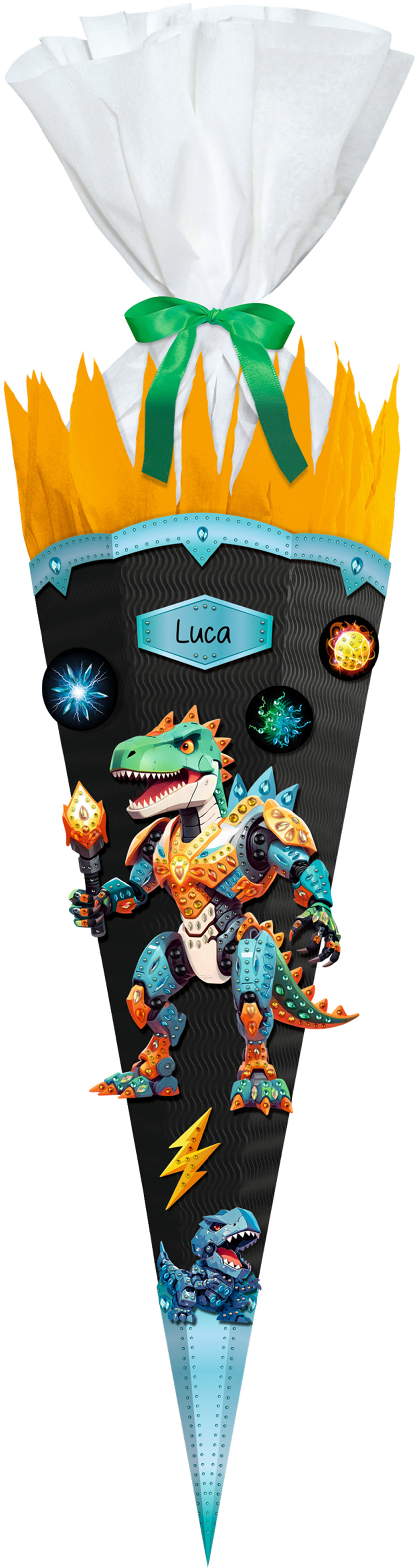 Das Set enthält Materlien zum Basteln einer Schultüte aus 3D-Colorwellpappe, 6-eckig, 68 cm hoch, Ø 20 cm, mit partiellem Diamantenbesatz