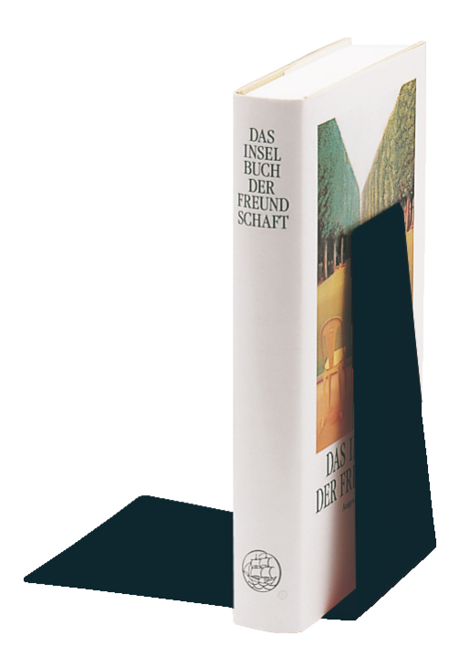 Keilförmig. Der breite Fuss verhindert das Wegrutschen der Buchstütze und damit der Bücher.