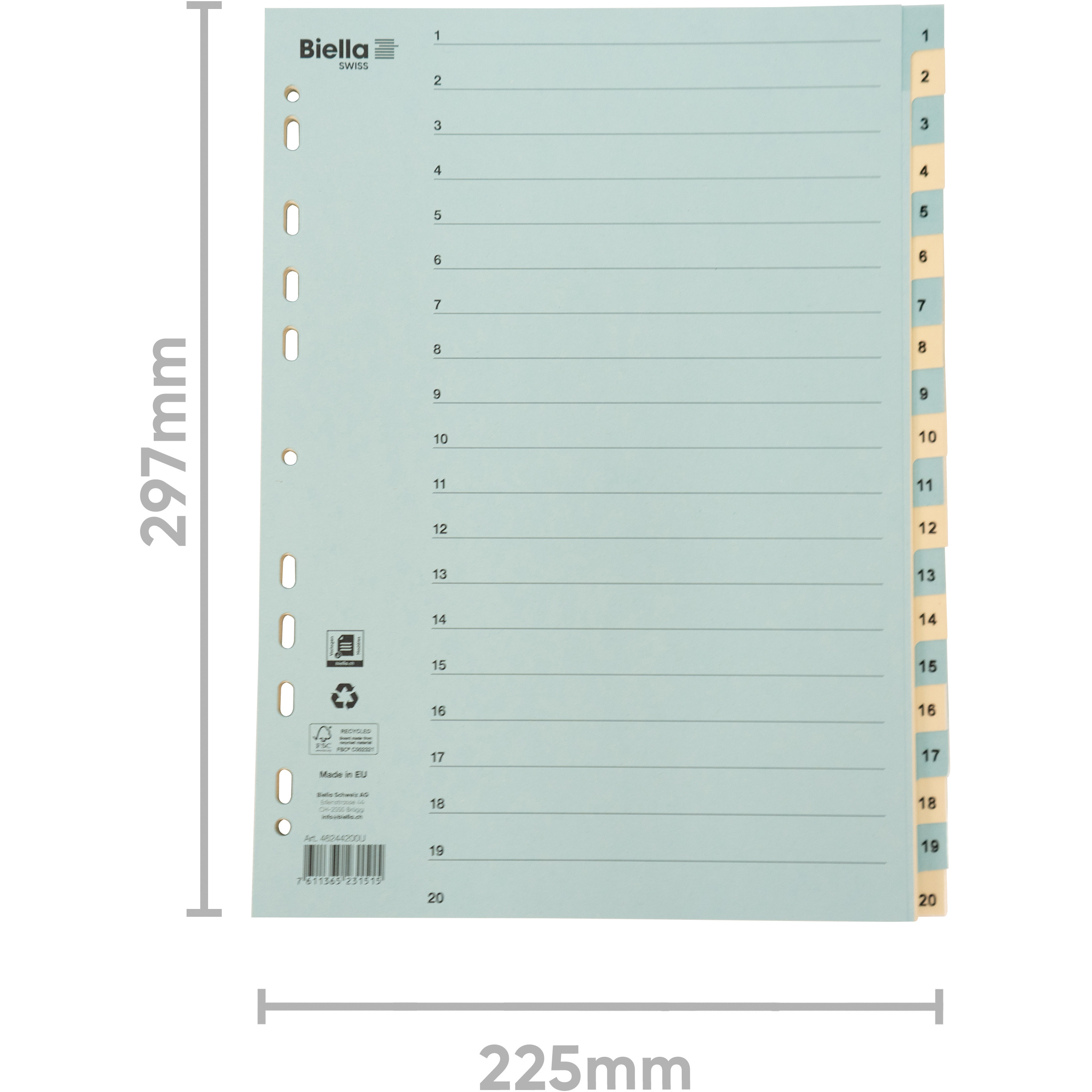 BIELLA Kartonregister 210g A4 46244200U blau/gelb 1-20 766361-ITC