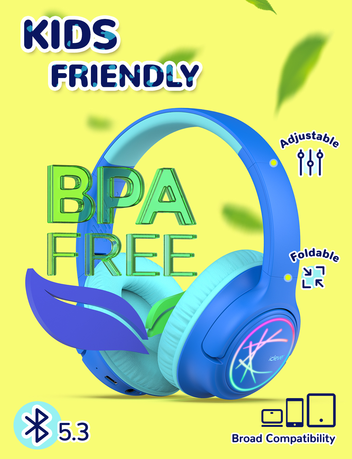Die iClever BTH18 Bluetooth-Kopfhörer für Kinder wurden entwickelt, um sicheren Musikgenuss mit kindgerechtem Design zu verbinden. Sie bieten eine stufenlose Lautstärkebegrenzung, die zwischen 74 dBA und 85 dBA wählbar ist, und sorgen so für zuverlässigen Gehörschutz. Mit beeindruckender Akkulaufzeit von bis zu 43 Stunden (LED aus) bzw. etwa 11 Stunden (LED aktiv) garantieren sie langfristigen Einsatz – ob auf langen Reisen, beim Lernen oder Entspannen. Die Kopfhörer sind leicht, faltbar und mit drehbaren Ohrmuscheln für präzigen Sitz ausgestattet – ideal für Kinder im Alltag. Bluetooth 5.3 sorgt für stabile kabellose Verbindungen, während ein integriertes Mikrofon und ein 3,5-mm-AUX-Anschluss zusätzliche Flexibilität bieten.