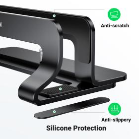 - Rutschfest und kratzfest: Der Laptopständer für den Schreibtisch ist mit rutschfesten Silikonpads im Schlitz ausgestattet, die Ihren PC optimal vor Kratzern schützen. Auch die Basis ist mit Silikonpads ausgestattet, um ein Verrutschen zu verhindern.