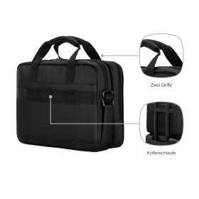 Mit dieser Tasche können Sie bei jedem Meeting und auf jeder Geschäftsreise sicher sein, dass Ihre wichtigen Dinge übersichtlich verstaut und schnell griffbereit sind. Die Prospectus hat ein gepolstertes Laptop-Fach und ein Tablet-Fach, beide mit schützendem kratzsicherem Futter. Im Organizer ist Platz für wichtige Accessoires, damit Sie sich auf das grosse Ganze konzentrieren können. Elegante, perfekt proportionierte Aktentasche für moderne Geschäftsleute.