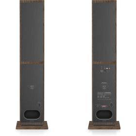 - Das Holzgehäuse ist in stilvollem Weiß oder Schwarz lackiert, oder, wenn Sie es vorziehen, in exklusivem Walnussfurnier, und fügt sich harmonisch in Ihr Zuhause ein. Die Stofffronten sind magnetisch befestigt und können für einen moderneren Look, falls Sie dieses Design bevorzugen, einfach abgenommen werden.